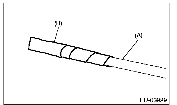 - To prevent damaging the tabs of the pump assembly, wrap the tip of flat tip screwdriver (A), etc. with tape (B).