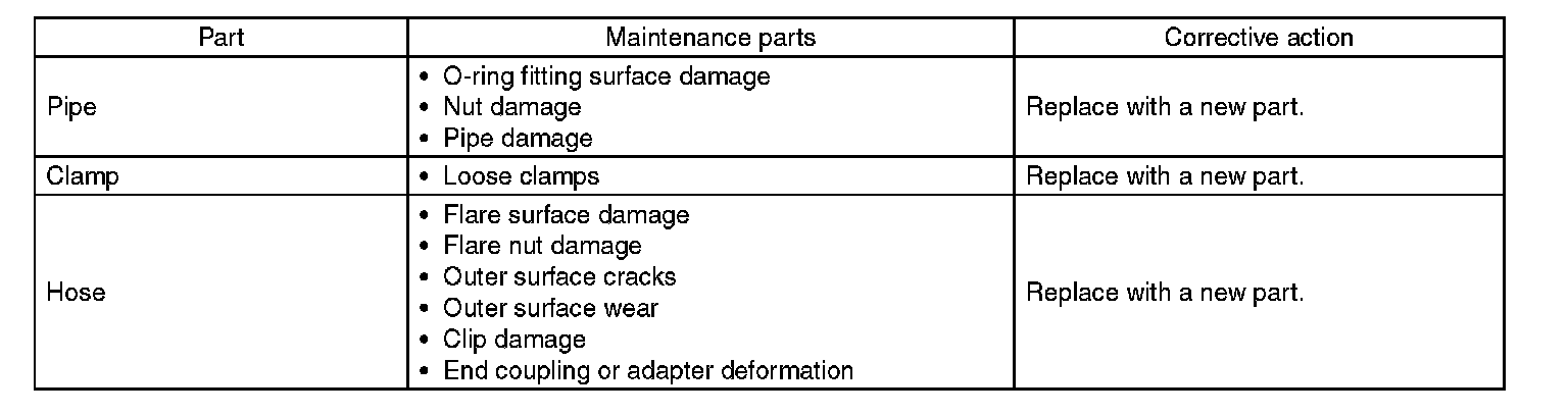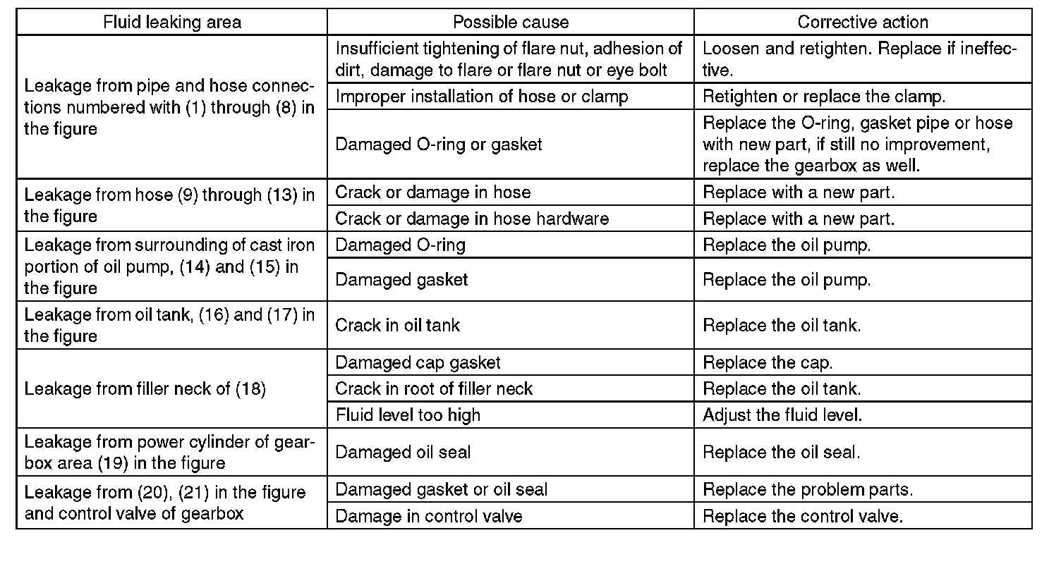 NOTE: There are conditions in which a fluid leak is diagnosed, but is not actually leaking. This is because the fluid spilt during the last maintenance was not completely wiped off. Be sure to wipe off spilt fluid thoroughly after maintenance.