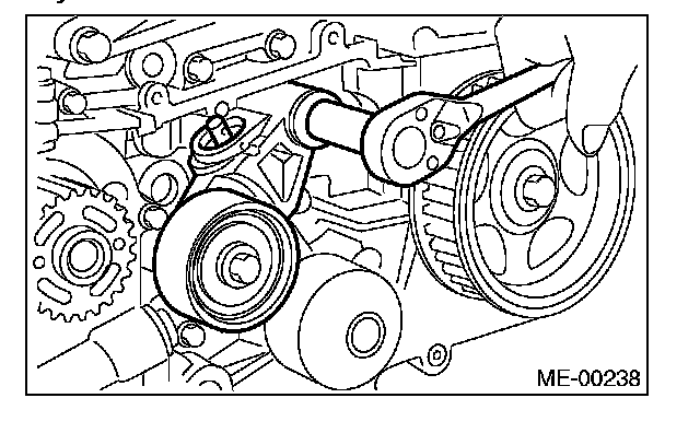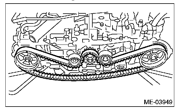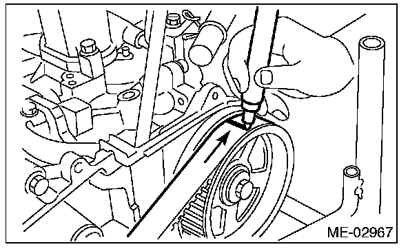 ^ Be careful not to let oil, grease or coolant contact the timing belt. Remove quickly and thoroughly if this happens.