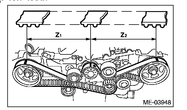 1. Check the timing belt teeth for breaks, cracks or wear. If any fault is found, replace the timing belt.