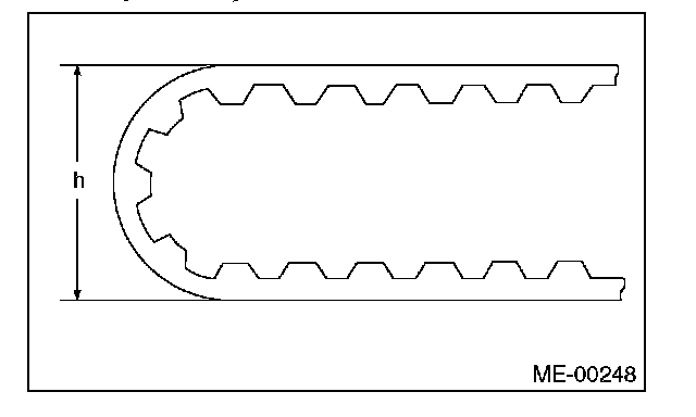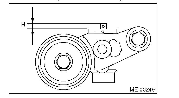 4. Measure the amount of rod protrusion "H" from the end surface of the body. If it is not within specifications, replace the automatic belt tension adjuster assembly with a new part.
