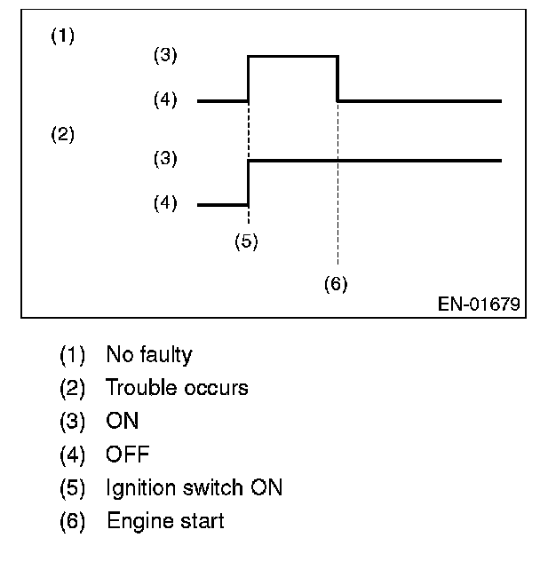 2. After the engine starts, malfunction indicator light blinks in a cycle of 0.5 Hz. (During diagnosis)