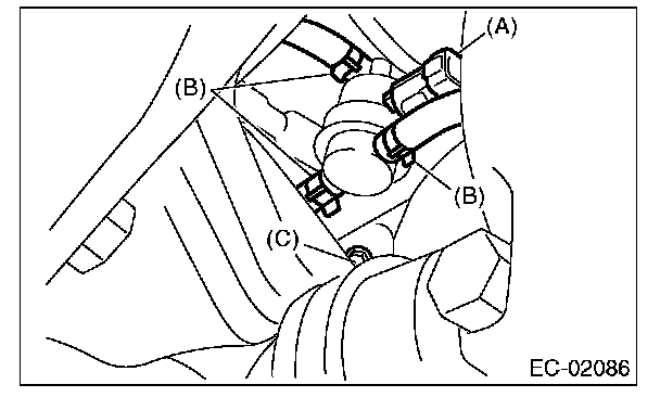 5. Disconnect the evaporation hose (B) from the pressure control solenoid valve.