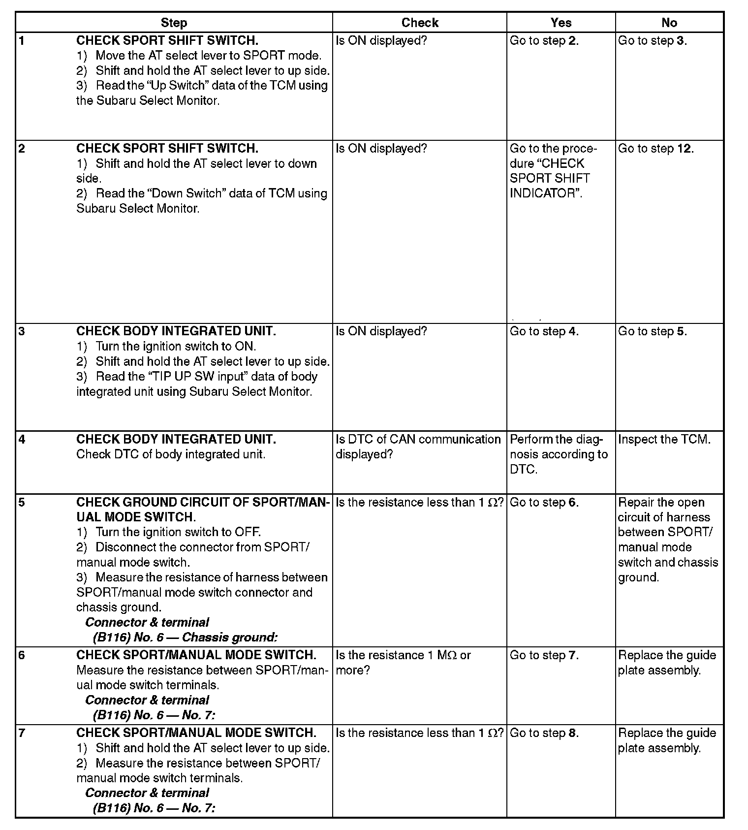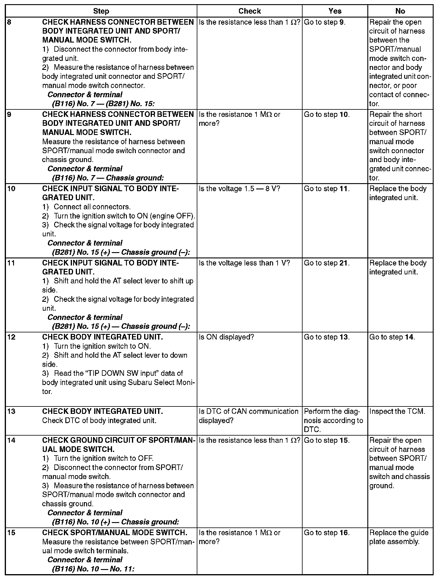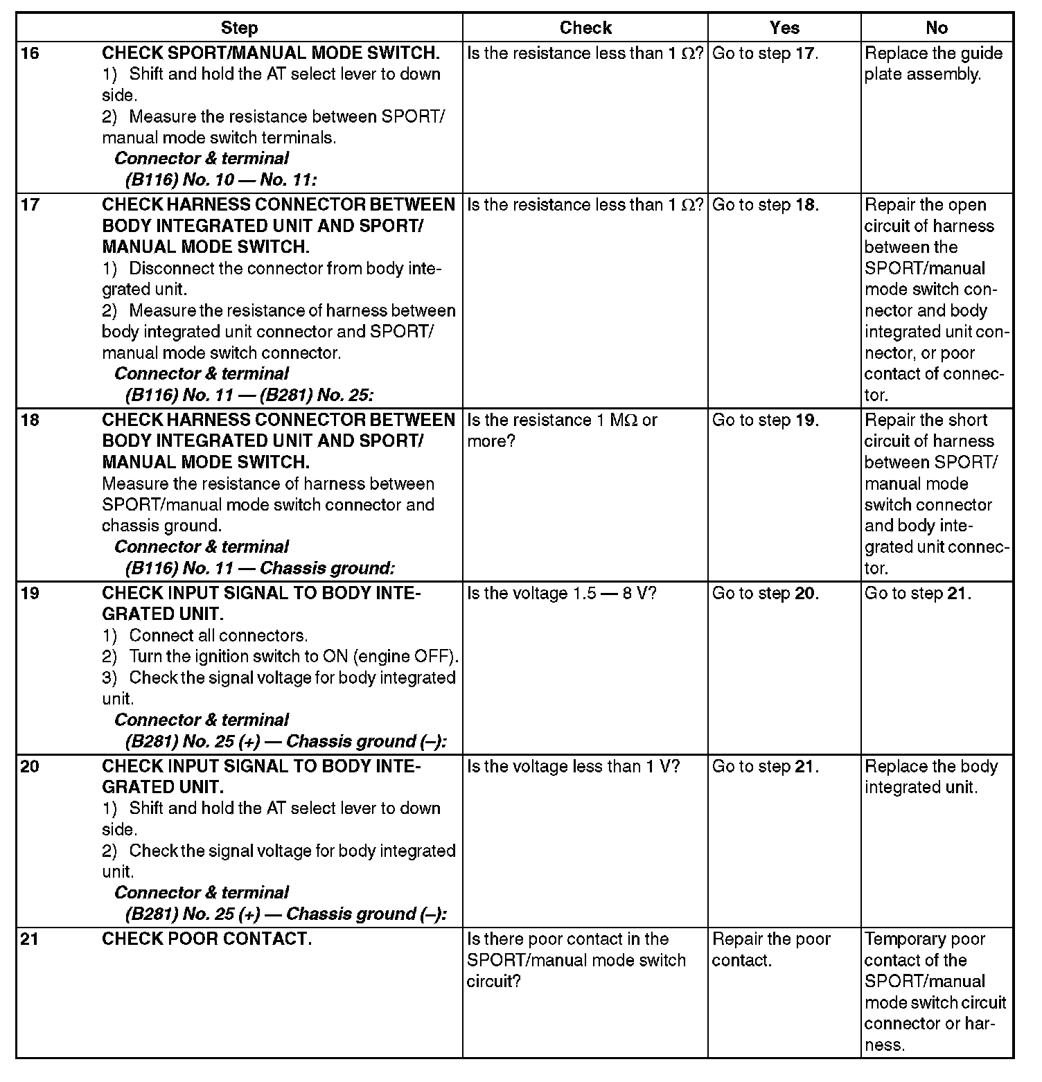 DIAGNOSIS: Input signal circuit of SPORT/manual mode switch is open or shorted.