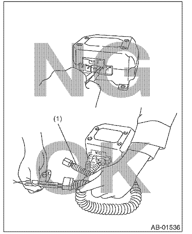 - When checking, use a test harness (1). Damage to connector terminal causes malfunction. Do not directly apply the tester probe to connector terminal of airbag.
