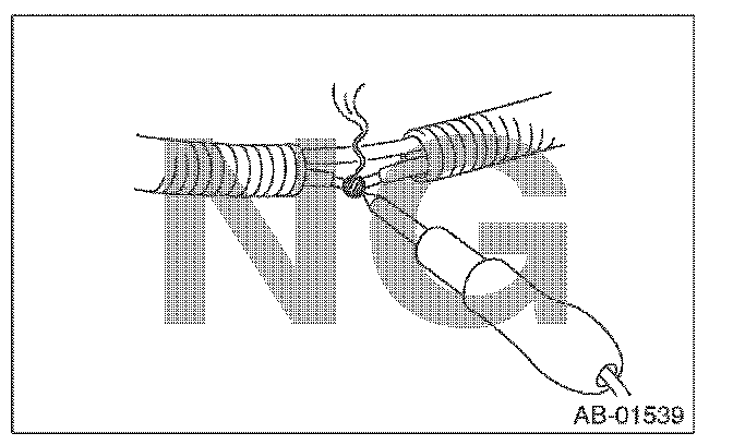 - If damage, open circuit or rust is found on airbag system wiring harness, do not use a soldering equipment to repair. Replace the faulty harness with a new genuine part.