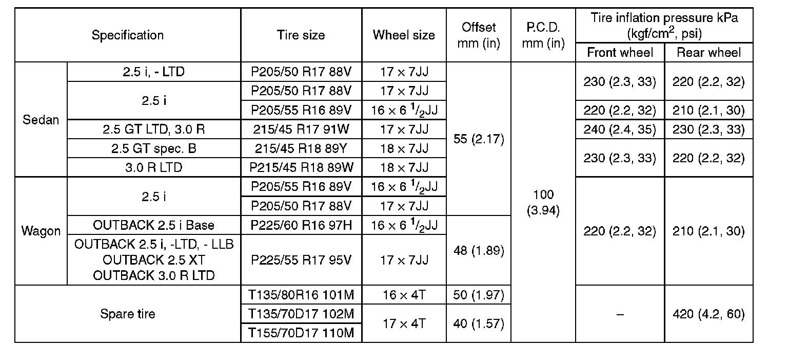 WHEEL AND TIRE SIZE