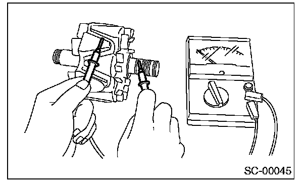 Check for continuity between the negative side heat sink and diode lead. If resistance is 1 ohm or less only in the direction from the heat sink to the diode lead, the negative diode is OK.