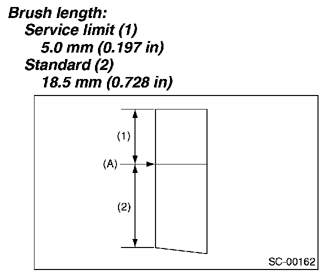1. Measure the length of each brush. Replace the brush if wear exceeds service limits. There is a service limit mark (A) on each brush.