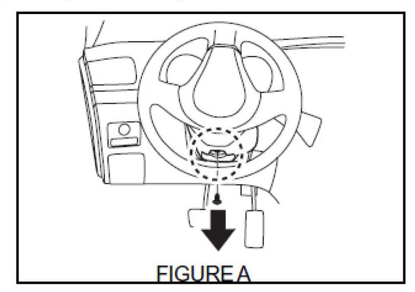 (1) Using a phillips screwdriver, remove one (1) phillips screw on the underside of the steering column shroud and carefully unsnap and remove the lower panel. Be careful not to damage the lower dashboard panel. (FIGURE A)