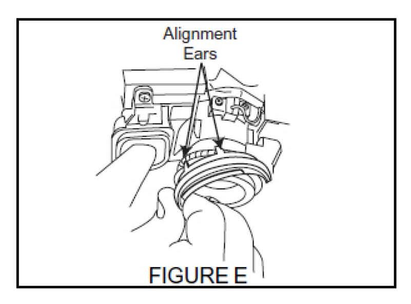 (2) When installing the immobilizer interface antenna placement clip, the alignment ears will be oriented towards the steering column. (FIGURE E)