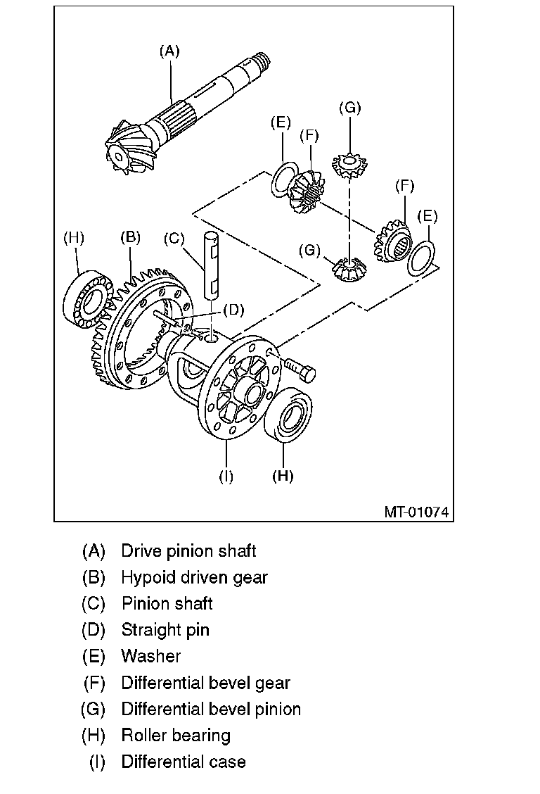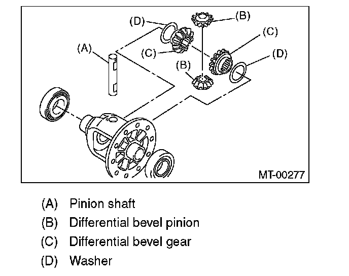 - When there is damage, wear or seizure of the differential bevel pinion, differential bevel gear, washer, pinion shaft or straight pin.