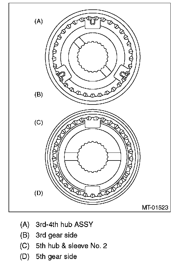 NOTE: Align the baulk ring and gear & hub assembly with the key groove.
