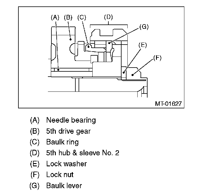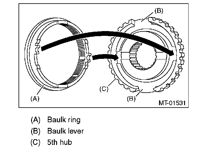 - Attach the baulk lever with the narrower side facing the 5th hub side.