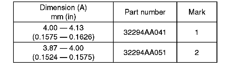 Using the ST, measure the protrusion amount (A) of ball bearing from transmission main case surface, and select a suitable plate in the following table.