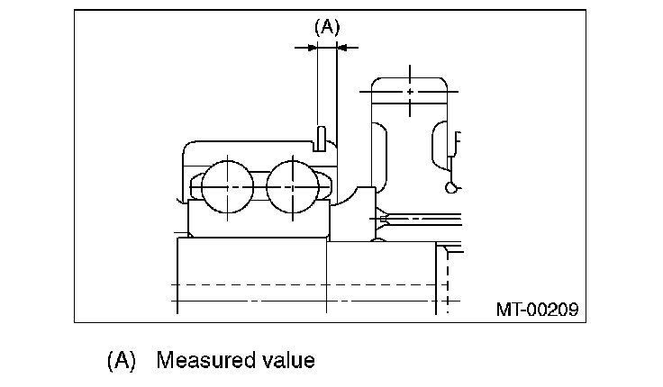NOTE: Before measuring, tap the end of main shaft with a plastic hammer lightly in order to make the clearance zero between the main case surface and moving flange of bearing.