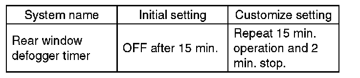 CAUTION: Check that the rear window defogger timer is in initial setting or customize setting before performing inspection.