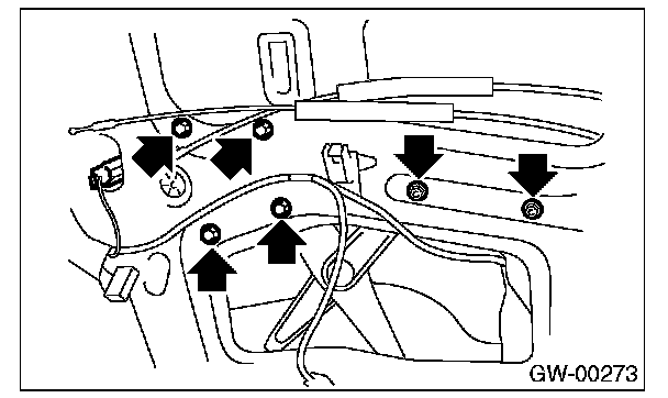 Tightening torque: Refer to "COMPONENT" of "General Description". [Ref. to FRONT DOOR GLASS, COMPONENT, General Description.]