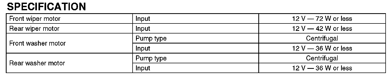 Wiper and Washer Systems: Specifications