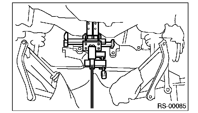 3. Support the rear arm horizontally using a transmission jack. Tighten the nuts and bolts which hold the rear arm, front link, rear link, upper link and shock absorber.