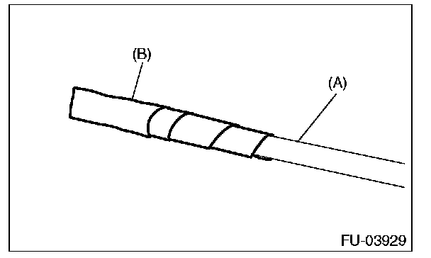 - To prevent damaging the tabs of the pump assembly, wrap the tip of flat tip screwdriver (A), etc. with tape (B).