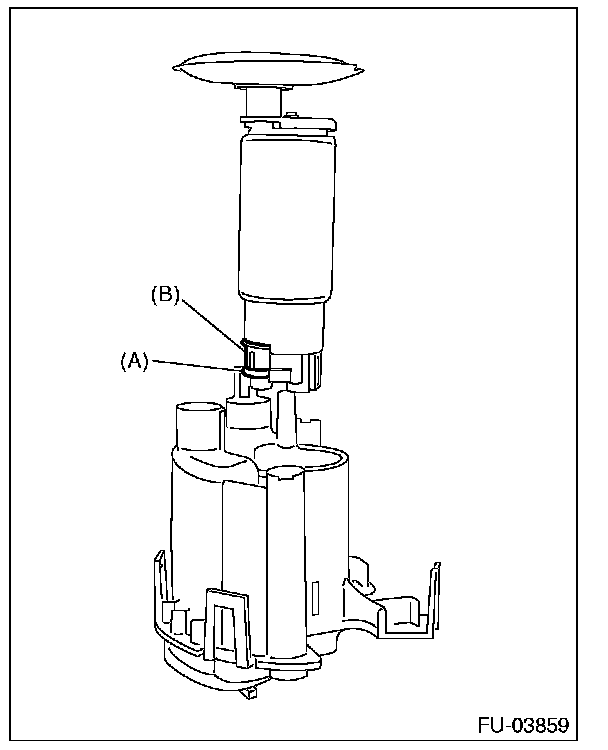 1. Assemble O-ring (A) and spacer (B) to the fuel pump, and attach the pump assembly to the fuel filter.