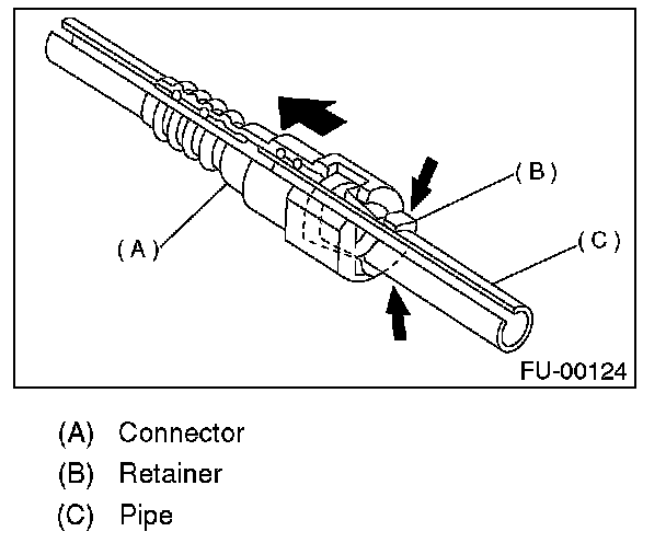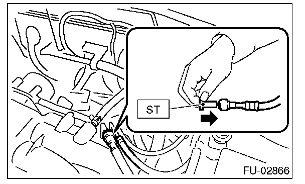 1. Disconnect the quick connector of the fuel delivery line by pushing the ST in the direction of the arrow.