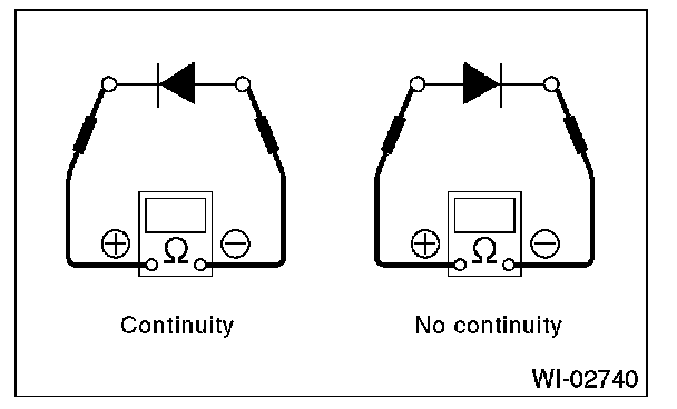 2. Use an ohmmeter to check for diode continuity. When contacting the negative lead to the diode positive side and the positive lead to the negative side, there should be continuity. When contacting the two leads in reverse, there should be no continuity.