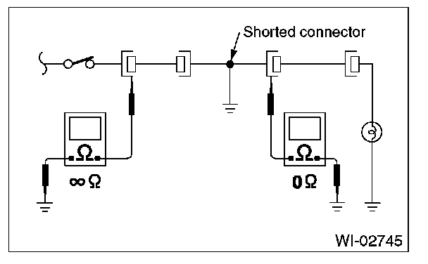 Disconnect all affected connectors, and check continuity between each connector and ground. When the ohmmeter indicates continuity between a particular connector and a ground, that connector is shorted.