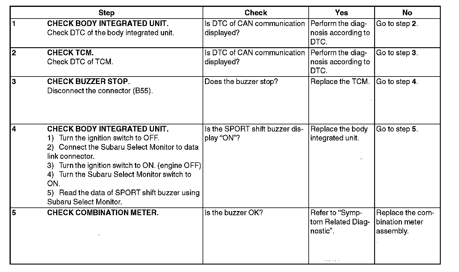 DIAGNOSIS: Output signal circuit of buzzer is open or shorted.