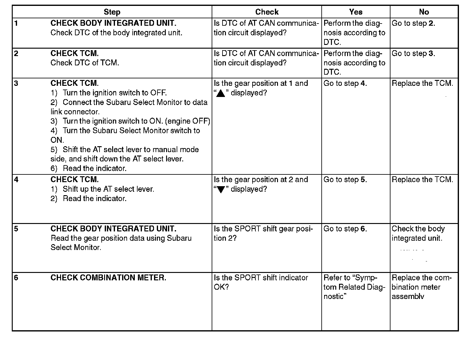 CHECK SPORT SHIFT INDICATOR LIGHTDIAGNOSIS: Output signal circuit of SPORT shift indicator light is open or shorted.