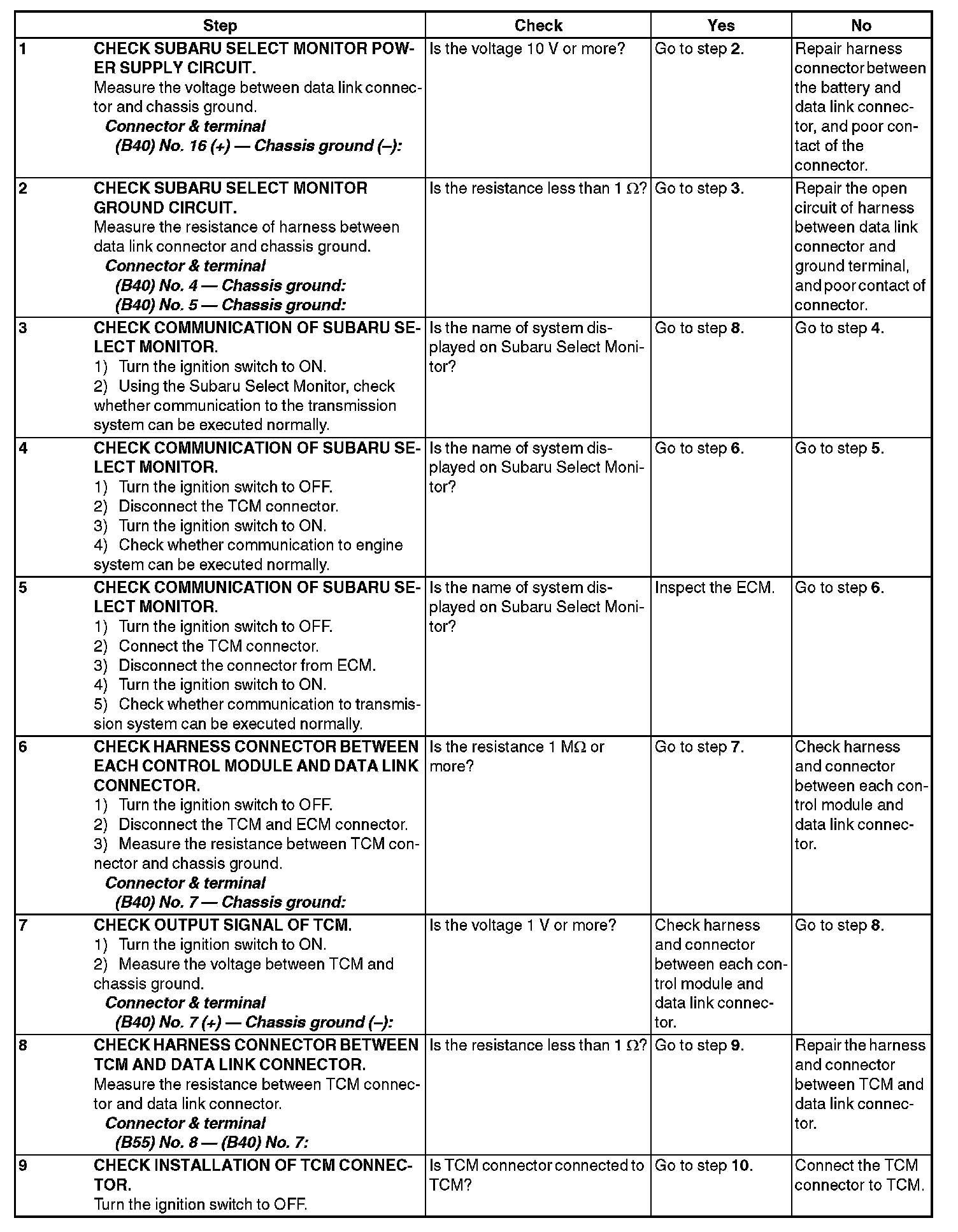 Diagnostic Procedure for Subaru Select Monitor Communication