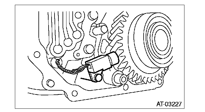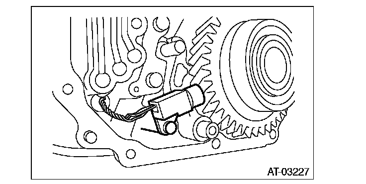 9. Remove the front vehicle speed sensor through the hole of AT transmission main case.