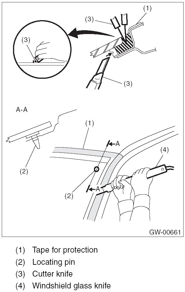 - Cutting of adhesive part shall be started with wider gap between windshield glass and body.