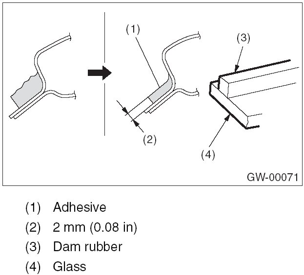 - For minimum drying time and vehicle standing time before driving after bonding, follow instructions or instruction manual from the adhesive manufacturer.