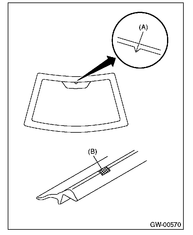5. Fit the mark (B) on molding to the notch (A) of glass side, and install the molding to entire perimeter of glass.