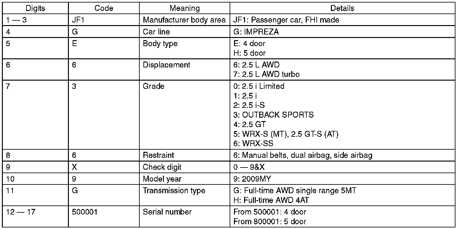 The meaning of the V.I.N. is as follows:
