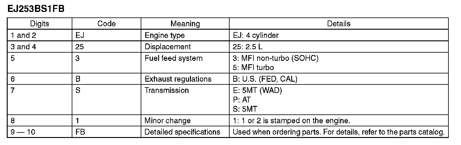 The model number label indicates: the applied model, the option code, the trim code, the engine type, the transmission type, and the exterior color code. This information is helpful when placing orders for parts.