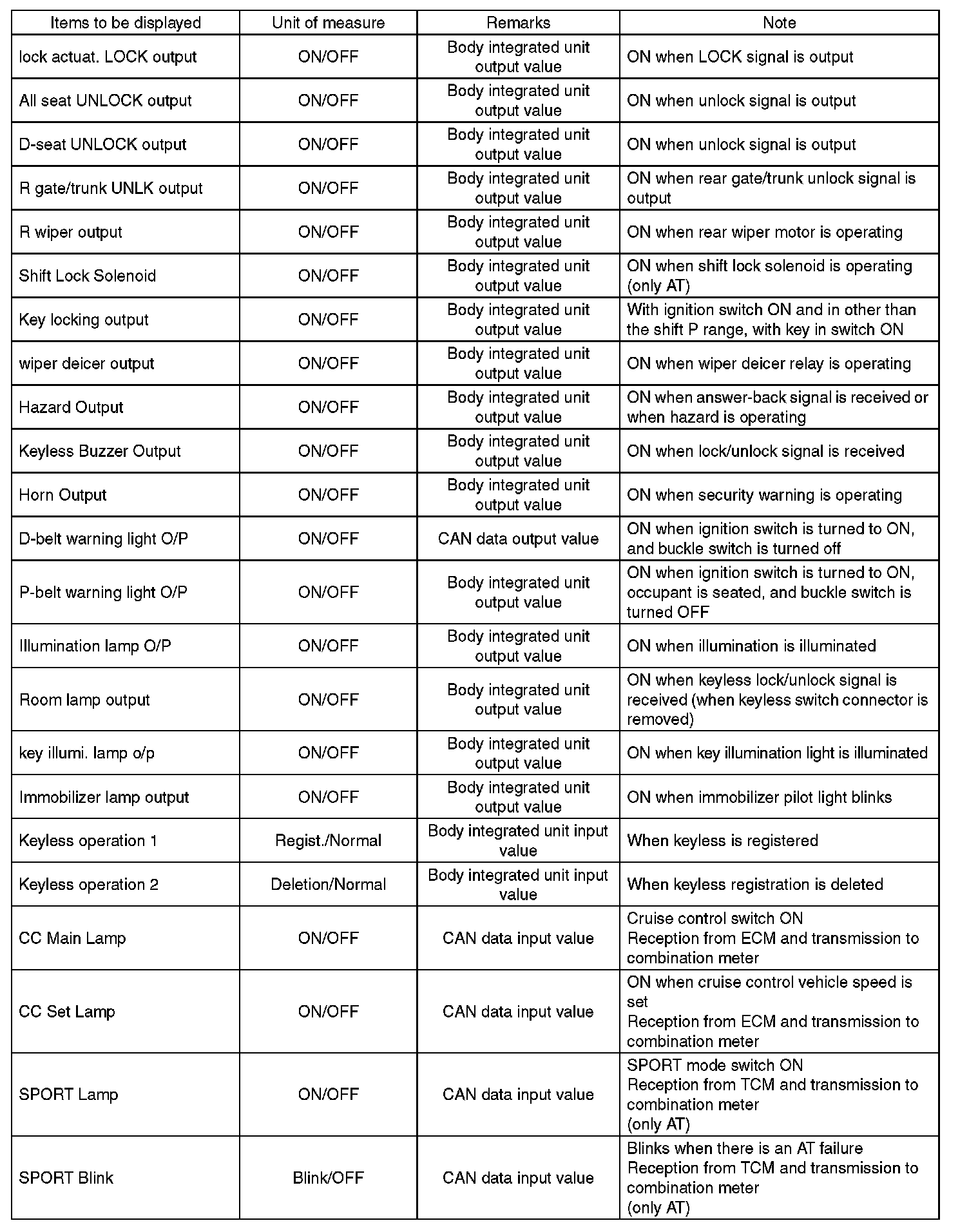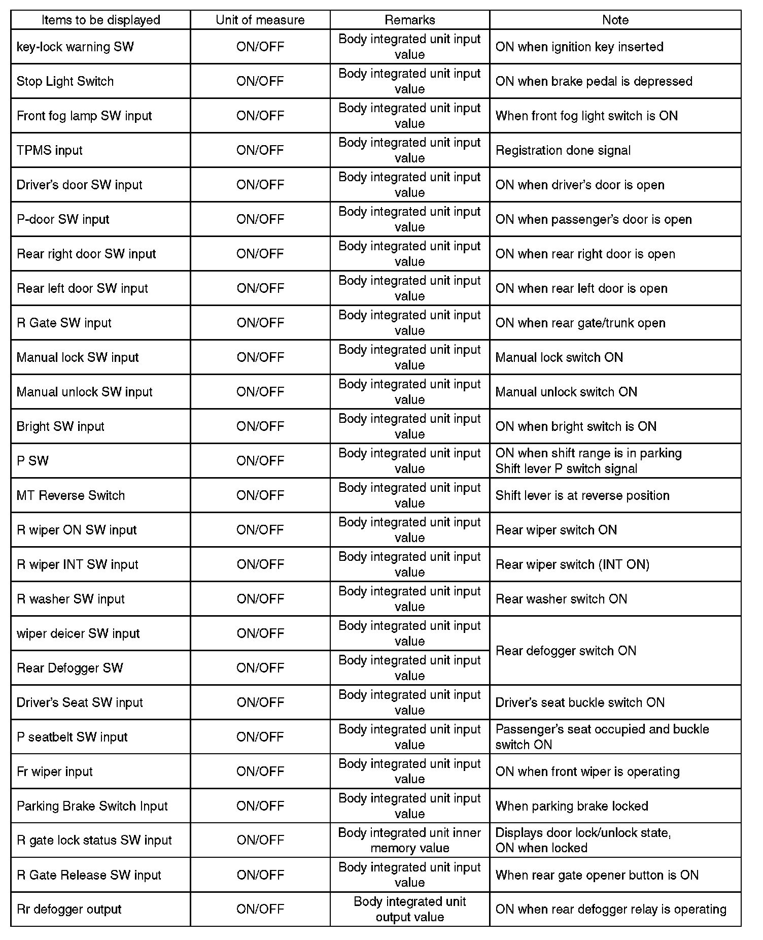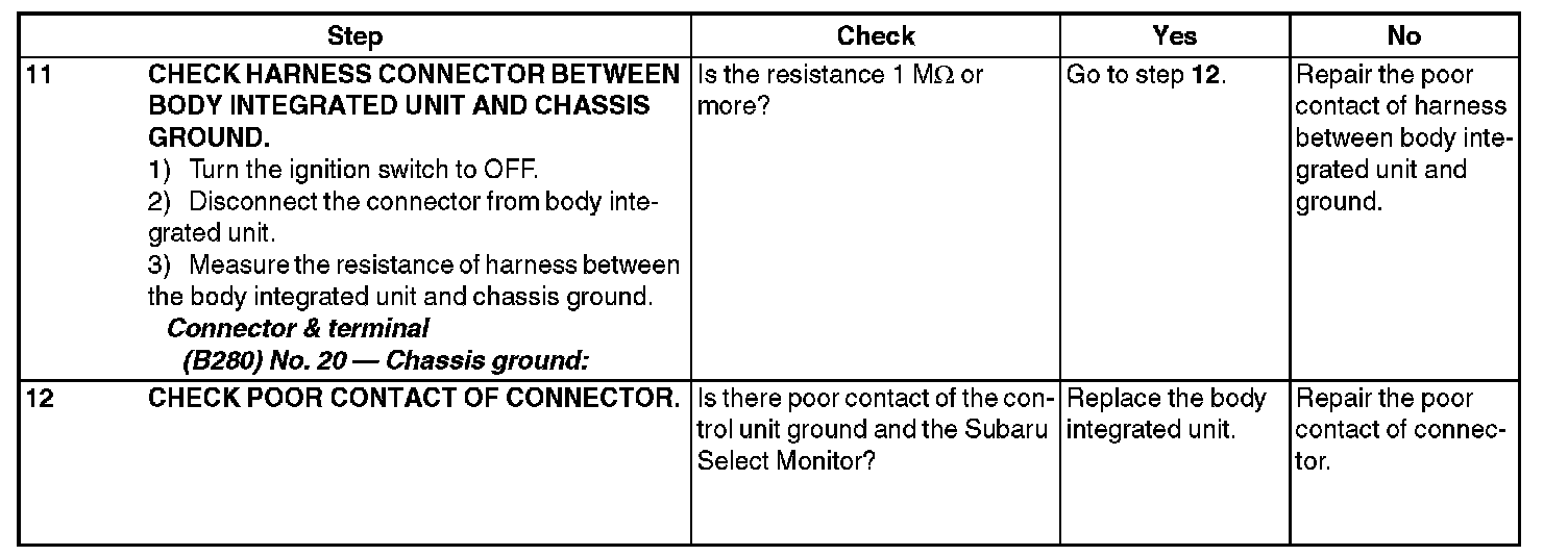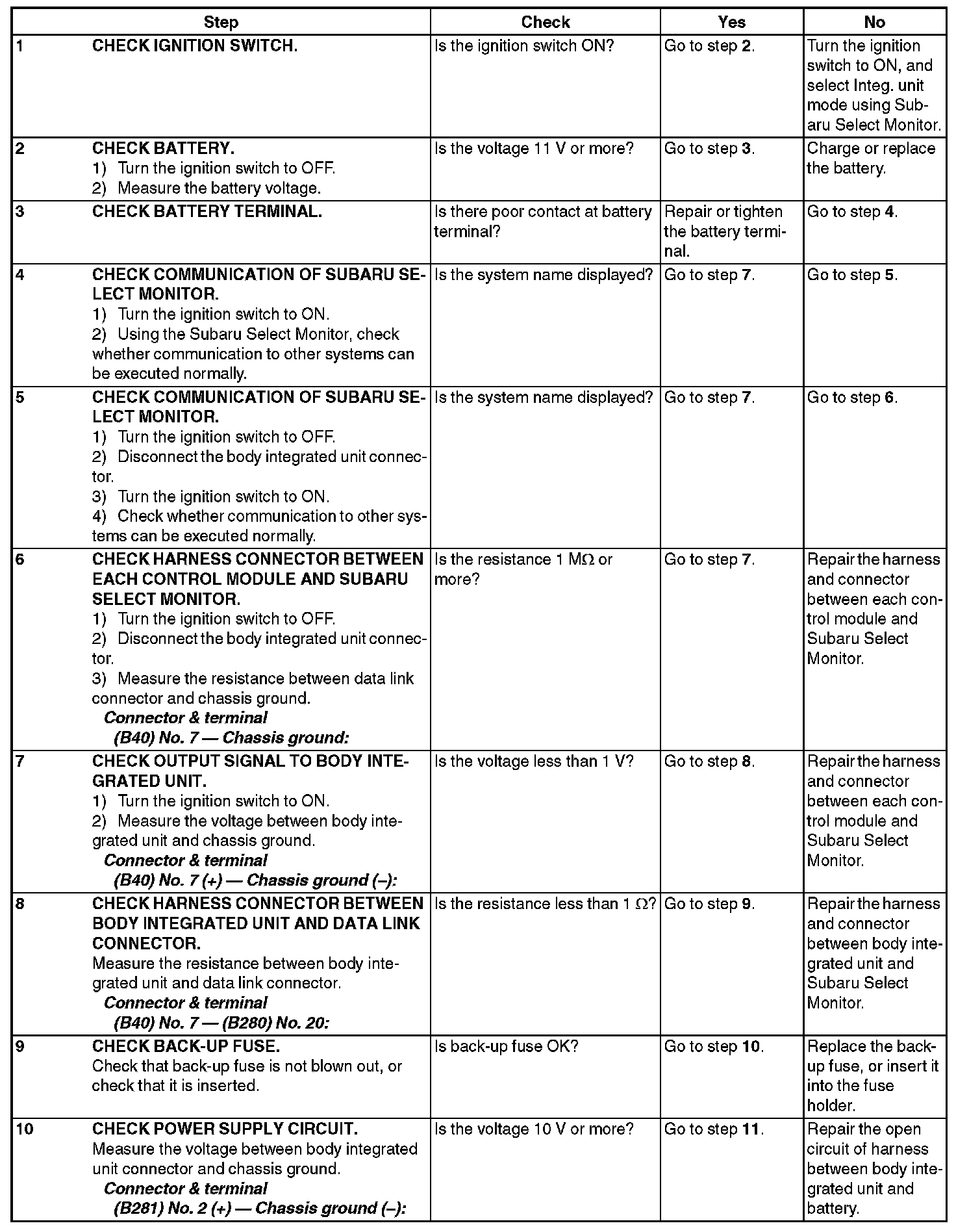 In order to check the body integrated unit function, inspect the body integrated unit and actuator using Subaru Select Monitor without operating switches.