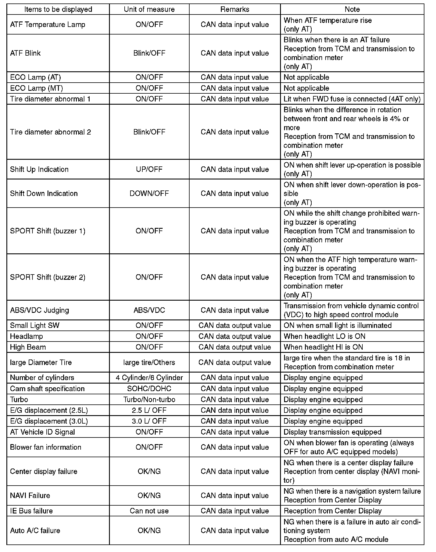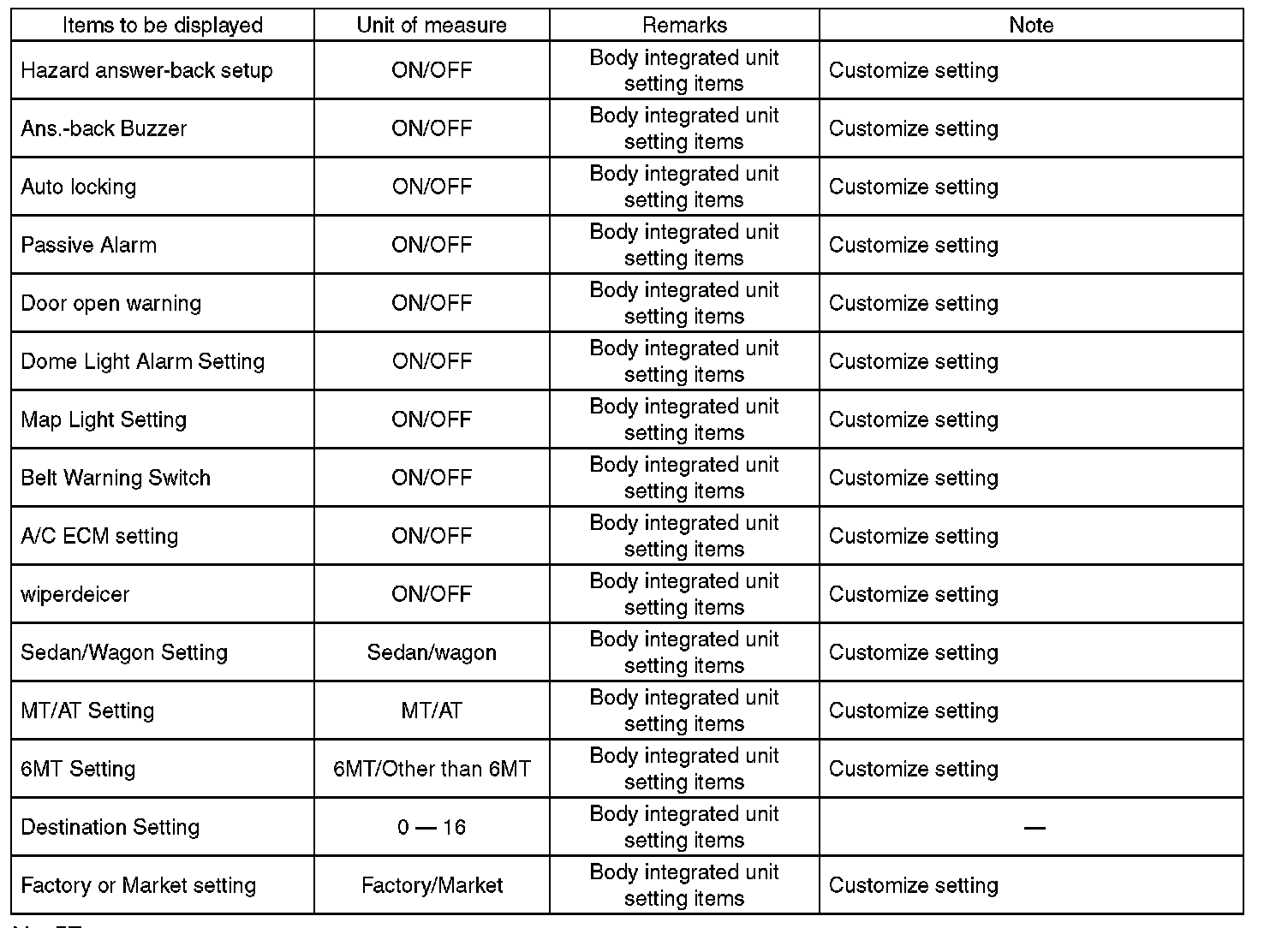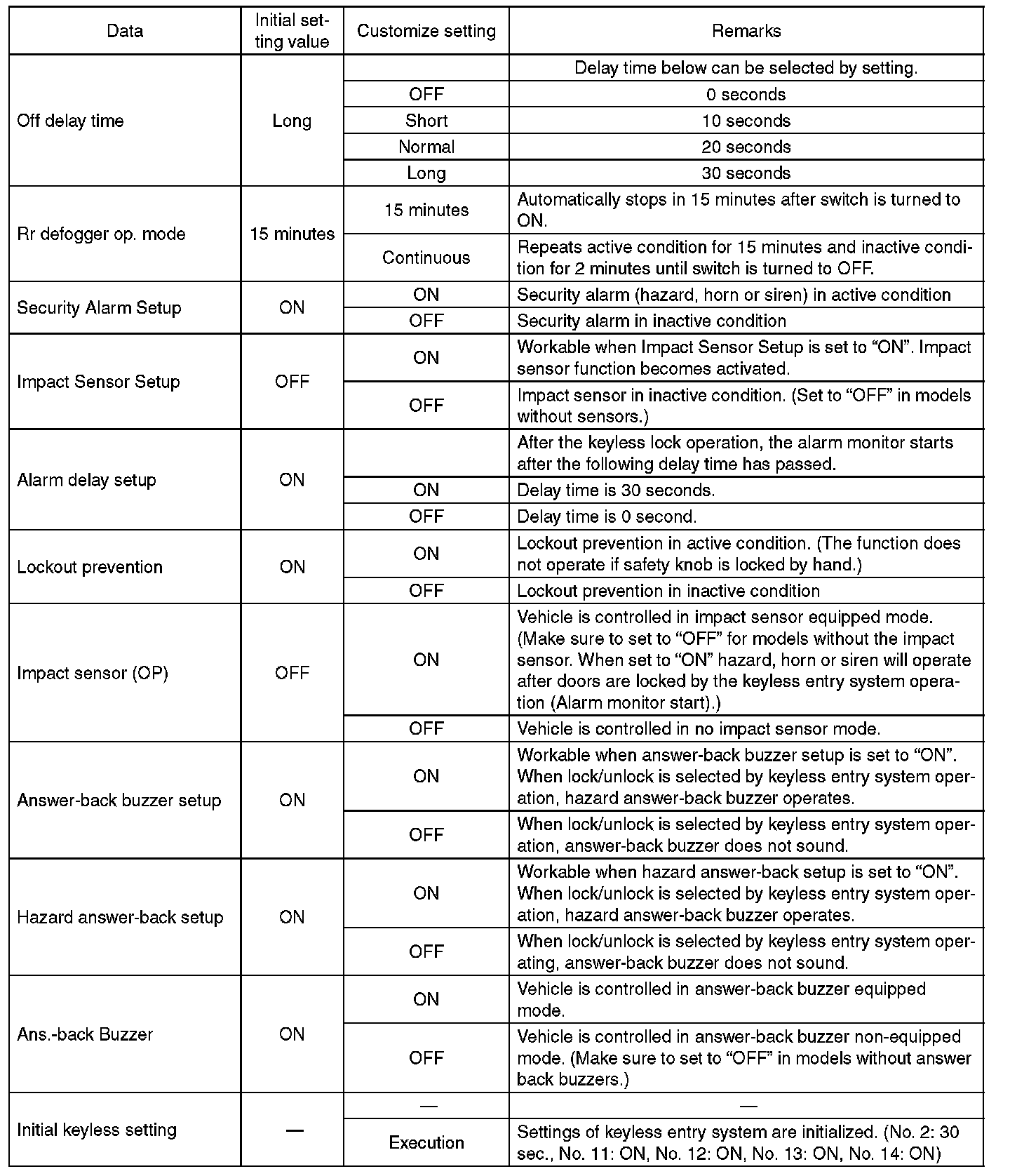 NOTE: Setting is different depending on the grade of vehicle. Initial setting