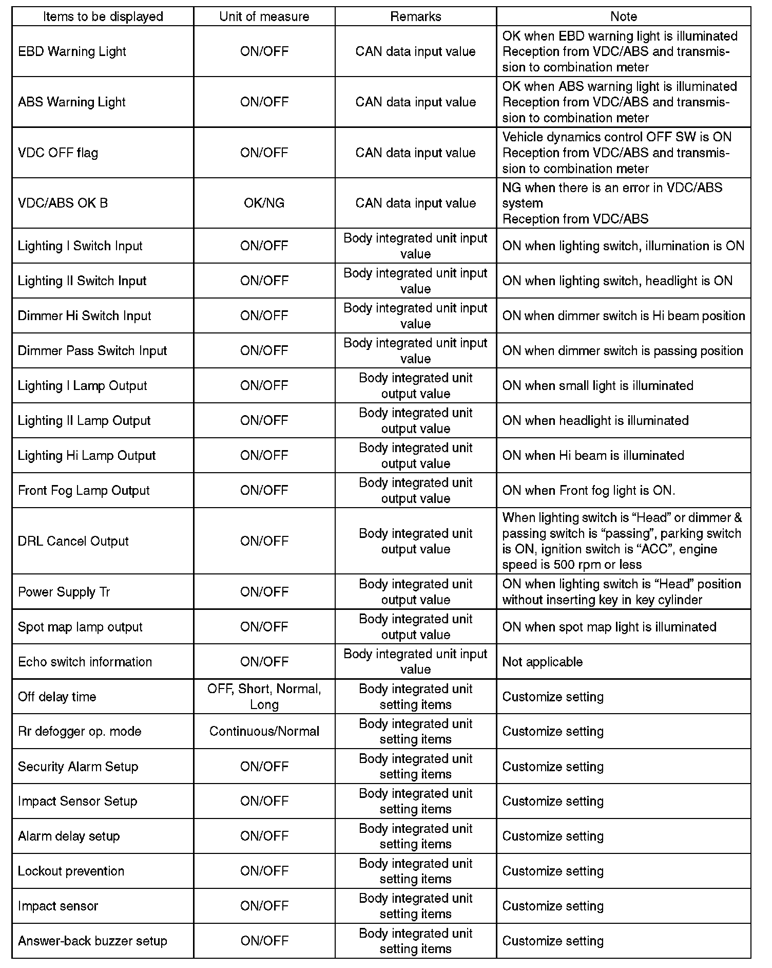 - Body integrated unit is core of LAN system, and also can select the function of all vehicle system control. It is possible to control the original functions of vehicle when registrations of body integrated unit and function setting are corresponded to vehicle equipment.