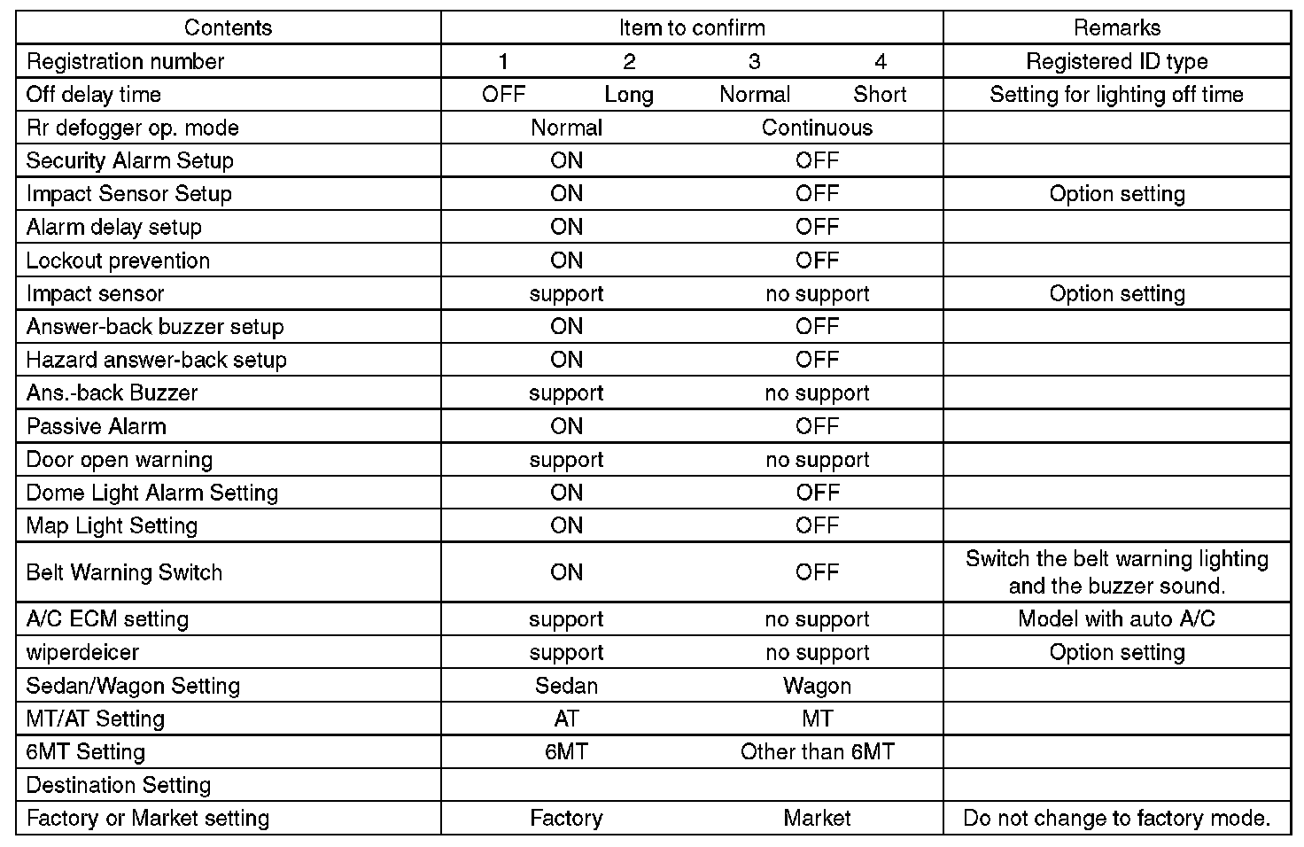 - Confirm key illumination does not blink or �Factory or Market setting" of body integrated unit registrations is "Market". If "Factory or Market setting" is set to Factory, key illumination blinks when ignition key is turned ON, to notify that the settings are unconfirmed.
