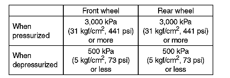 7) Read values indicated on the pressure gauge and check if the fluctuation of the values between decompression and compression meets specification. Depress the brake pedal and check that it is not abnormally hard, and tightness is normal.