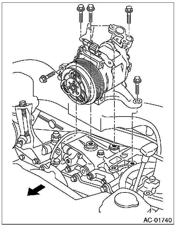7. Remove the bolt and remove the low-pressure hose and high-pressure hose.