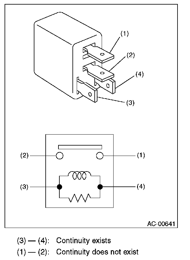 While applying battery voltage to the terminal between (3) and (4), check for continuity between (1) and (2)