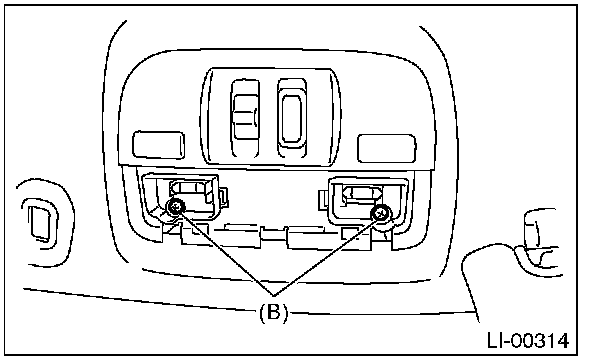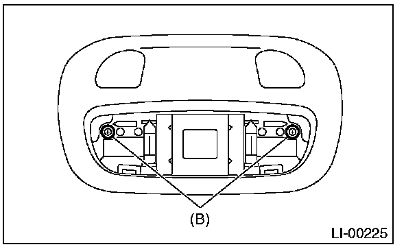 2. Remove the lens (A) and spot map light mounting screws (B).