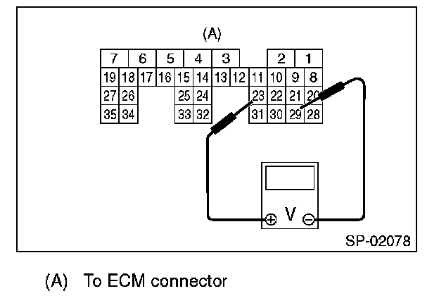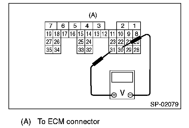 6. Measure the voltage between ECM connector terminals.