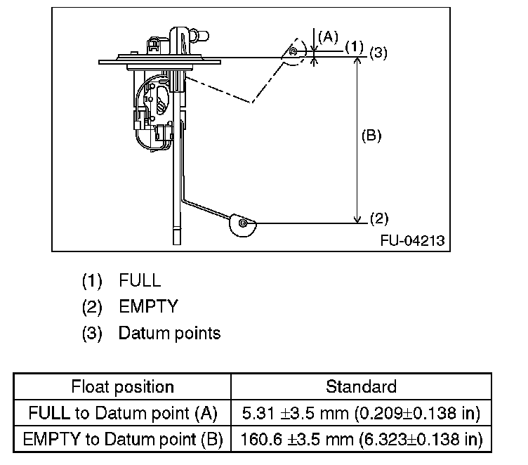 Measure the fuel sub level sensor float position.