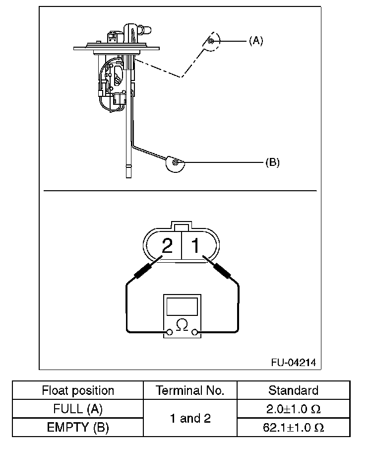 Measure the resistance between fuel sub level sensor terminals.