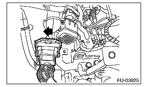 4) Slide the bulkhead harness connector in the direction of the arrow and remove it from the rear engine hanger.